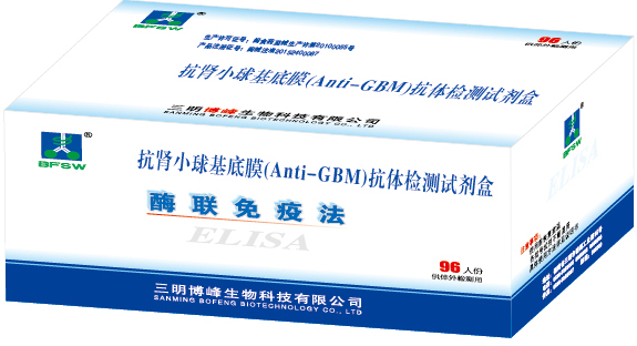 預(yù)期用途:用于體外定性檢測(cè)人血清中抗腎小球基底膜抗體,用于原發(fā)性腎小球腎炎等自身免疫系統(tǒng)性疾病的輔助診斷。原發(fā)性腎小球腎炎臨床上主要分為急性腎小球腎炎、急進(jìn)性腎小球腎炎、慢性腎小球腎炎和隱匿性腎小球腎炎四類。典型表現(xiàn)有急進(jìn)性腎炎或/和肺出血,小部分患者雖有血清及腎組織內(nèi)抗腎小球基底膜抗體存在卻無(wú)任何臨床表現(xiàn),大部分患者在短期內(nèi)即出現(xiàn)急進(jìn)性腎衰竭或/和成人呼吸窘迫綜合征。人群發(fā)病率約在0.1/100萬(wàn),我國(guó)近年來(lái)診斷的病例數(shù)有逐漸上升趨勢(shì)。抗腎小球基底膜抗體相關(guān)疾病的診斷主要依靠在血清或組織中檢測(cè)出抗腎小球基底膜抗體,或腎臟免疫病理檢測(cè)出的經(jīng)典的IgG、C3沿腎小球毛細(xì)管基底膜呈線性沉積,傳統(tǒng)上認(rèn)為腎臟病理仍是診斷的金標(biāo)準(zhǔn)。